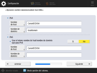 Especifique la dirección del servidor DNS, el nombre del host DNS y el nombre del dominio DNS.
