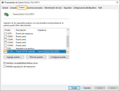 Haga clic en la pestaña [Puertos].
