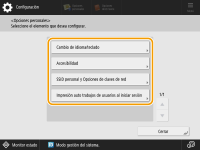 Para poder utilizar con mayor facilidad la pantalla de <Inicio > y la pantalla de Funciones básicas de cada función, puede personalizar la pantalla reorganizando los botones o creando botones de acceso directo. Por otra parte, puede trabajar de forma más eficiente registrando las opciones ya especificadas para funciones de uso frecuente en <Personales>/<Compartidos>, o las Opciones personales para personalizar el entorno de funcionamiento según sus preferencias.