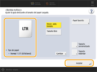 1 | Asegúrese de que la configuración del tamaño del papel del depósito de papel coincide con el tamaño del papel que se va a cargar en el depósito de papel. |