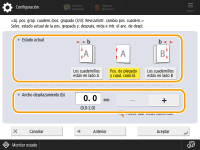 Seleccione el estado actual de la posición de grapado y establezca la anchura de desplazamiento.