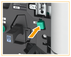 Si le Module de perforation-BS ou le Module de perforation-BT (pour la machine de 230 V uniquement) est installé, enfoncez le bouton (A1) au maximum.