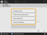 Se a máquina estiver configurada de maneira que seja solicitado que os usuários façam login quando ela é iniciada (Especificando quando exibir a tela de login), <Default Screen after Startup/Restoration> será exibido como um item em <Personal Settings>. A tela exibida após a máquina ser iniciada pode ser configurada para cada usuário.
