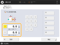 按<X>或<Y>,使用数字键输入各边的长度。 ![]() 如果将常用纸张尺寸注册到按钮<S1>到<S5>,只需简单一按即可进行调用。 注册任意尺寸纸张(自定义尺寸纸张) | |
