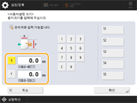 <X> 또는 <Y>를 눌러서 숫자 키를 사용하여 양쪽의 길이를 입력합니다. ![]() 자주 사용하는 용지 크기를 <S1>부터 <S5>까지 버튼에 등록하면 원터치로 불러낼 수 있습니다. 프리 사이즈 용지 등록(사용자 정의 크기 용지) | |