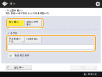 팩스 기본 기능 화면에서 수신인을 지정하십시오.
