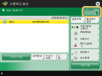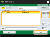 스캔 기본 기능 화면에서 수신인을 지정하십시오. 스캔 기본 기능 화면