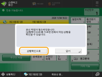 <작업 접수시의 확인 표시>를 <설정>(으)로 설정한 경우 전송 작업을 수신한 후 표시되는 다음의 화면에서 <상황확인> 화면을 표시할 수 있습니다.<작업 접수시의 확인 표시>