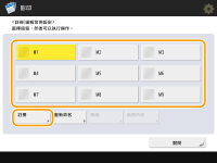 您可註冊的 <常用設定> 數量限制如下。 影印:9 傳真:18 掃描並傳送:18 掃描後儲存 (信箱):9 掃描後儲存 (進階郵件信箱/網路/記憶體媒體):9 存取已儲存檔案 (信箱):9 存取已儲存檔案中的 JPEG/TIFF 檔案 (進階郵件信箱/網路/記憶體媒體):9 存取已儲存檔案中的 PDF/XPS 檔案 (進階郵件信箱/網路/記憶體媒體):9 串聯影印*設定(僅限 8900 系列)當本機或串聯影印印表機重新啟動時,<之前的設定> 或 <常用設定> 中儲存的串聯影印設定會變更為本機影印設定。如果您想重新叫用 <之前的設定> 並執行串聯影印,請開啟本機的主電源,並在 <啟動時連線的等待時間> 中設定的時間經過後更新串聯影印印表機的資訊。<串聯影印通訊逾時>(僅限8900 系列) |