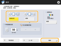 若要在雙面影印時,在背面疊加樣式影像,請設定 <反面>。若要疊加和正面相同的樣式影像,請按下 <與正面相同>。若要疊加和正面不同的樣式影像,請按下 <設定>,並前進至步驟 5。