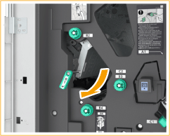 | 打開騎馬釘裝訂裝置的右蓋板 (C5)。 |