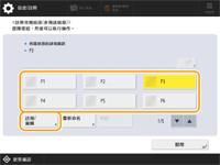 如果 <多用途紙盤預設值> 下方的 <總是指定> 設為 <常用紙張>,則將紙張裝入多用途紙盤時會顯示一個畫面,可讓您選擇「常用紙張」。<多用途紙盤預設值> |