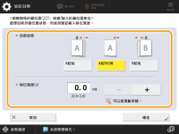 3 | 選擇當前折紙位置並調整移位寬度。 ![]() 檢查測試頁面上的當前裝訂位置和移位寬度。 |