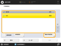 如果用戶端機器的系統管理員 ID 和 PIN 與主機機器的系統管理員 ID 與 PIN 不符,則無法配置裝置資訊。變更系統管理員 ID 和 PIN 準備裝置資訊配置程序,或是在收到資訊後進行更新可能需要數分鐘的時間,請等到準備或更新程序完成後再關閉本機,否則可能會造成機器故障。 在接收裝置資訊的用戶端機器上會顯示設定更新畫面,同時必須等到更新完成時才能執行作業。建議您等到沒有使用者時再配置裝置資訊。 |