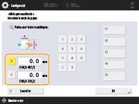 Premeu <X> o <Y> per introduir la longitud de cada costat utilitzant les tecles numèriques. ![]() Si deseu la mida del paper que normalment utilitzeu al botons del <S1> al <S5>, podeu seleccionar-la amb les tecles ràpides. Desament de paper de mida lliure (Paper de mida personalitzada) | |