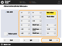 1 | Stiskněte tlačítko <Vlastní velikost>. ![]() Můžete nastavit velikost papíru na <Volná velikost>, vyhnete se tím zadávání nastavení velikosti papíru. Pokud vkládáte za účelem kopírování papír neznámé velikosti, nebo pokud je velikost papíru již uložena v ovladači tiskárny, zadejte <Volná velikost>. |