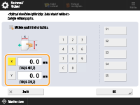 Stiskněte <X> nebo <Y> a zadejte délku každé strany pomocí číselných tlačítek. ![]() Jestliže si velikosti papíru, které často používáte, uložíte pod tlačítka <S1> až <S5>, můžete je vyvolat jediným dotekem. Uložení volné velikosti papíru (Vlastní velikosti papíru) do paměti stroje | |