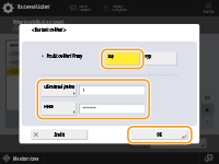 Chcete-li používat funkci ověření proxy serveru, stiskněte toto tlačítko a nastavte informace pro ověření. Na zobrazené obrazovce stiskněte <Zap>, zadejte uživatelské jméno a heslo pro ověření proxy serveru a stiskněte <OK>.