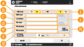 2 | Angiv hvert emne. ![]() <SMTP-godkendelse (SMTP-GODK)>For at bruge SMTP-godkendelse skal du trykke på <Til> og indtaste brugernavnet og passwordet for de angivne mailkonto i <Brugernavn> og <Password>. ![]() Brugernavn og password <Brugernavn> og <Password> for <SMTP Authentication> bruges også ved videresendelse af modtagne dokumenter. Videresendelse udføres som "Fast enhedsgodkendelse" uanset indstillingerne for <Information, som bruges til SMTP-servergodkendelse>. (<Information, som bruges til SMTP-servergodkendelse>) <Tillad TLS (SMTP-afsendelse)>For at kryptere kommunikation ved hjælp af TLS ved modtagelse af e-mails og I-faxer med SMTP-serveren skal du trykke på <Altid TLS> eller <Til>. Hvis du ikke vil modtage andre data end krypterede data, skal du vælge <Altid TLS>. <Vis Godk.skærmbill. ved afsendelse>Ved afsendelse af e-mails og I-faxer skal du for at vise skærmbilledet til indtastning af brugernavnet og passwordet trykke på <Til>. <Tillad TLS (SMTP-afsendelse)>For at kryptere kommunikationen til/fra SMTP-serveren med TLS skal du trykke på <Til>. Når <Til> er valgt, kan du bekræfte TLS-servercertifikatet under kommunikation med serveren og føje CN til verificeringsemnerne. <Bekræft TLS-certifikat for SMTP-afsendelse> ![]() Ved indstilling af SMTP-godkendelse Vælg én af de tre godkendelsesmetoder. Fast enhedsgodkendelse Angivelse af godkendelsesoplysninger ved afsendelse Registrering af oplysninger for hver bruger Fast enhedsgodkendelse: Når <Brugernavn> og <Password>, der er angivet i <SMTP-godkendelse (SMTP-GODK)>, bruges, og godkendelsesskærmen (<Log på SMTP-server>) ikke vises ved afsendelse Angiv indstillingerne, som følger. <SMTP-godkendelse (SMTP-GODK)>: <Til> <Brugernavn>: Angiv brugernavnet. <Password>: Indtast adgangskoden. <Vis Godk.skærmbill. ved afsendelse>: <Fra> <Information, som bruges til SMTP-servergodkendelse>: <Enhedsindstillinger> Angivelse af godkendelsesoplysninger ved afsendelse: Når <Brugernavn> og <Password>, der er angivet i <SMTP-godkendelse (SMTP-GODK)>, bruges, og godkendelsesskærmen (<Log på SMTP-server>) vises ved afsendelse <Brugernavn> og <Password>, der er angivet i <SMTP-godkendelse (SMTP-GODK)>, angives som godkendelsesoplysningerne ved afsendelse. Når <Brugernavn> og <Password> for <SMTP-godkendelse (SMTP-GODK)> ikke er angivet (tom), er afsendelsesoplysningerne ved afsendelse også tomme. Angiv indstillingerne, som følger. <SMTP-godkendelse (SMTP-GODK)>: <Til> <Brugernavn>: Angiv brugernavnet. <Password>: Indtast adgangskoden. <Vis Godk.skærmbill. ved afsendelse>: <Til> <Information, som bruges til SMTP-servergodkendelse>: <Enhedsindstillinger> Registrering af oplysninger for hver bruger: Når <Reg. info for hver bruger> bruges, og godkendelsesskærmen (<Log på SMTP-server>) ikke vises ved afsendelse SMTP-godkendelse udføres med det brugernavn og password, der er registreret på den lokale enhed. Angiv indstillingerne, som følger. <SMTP-godkendelse (SMTP-GODK)>: <Til> <Vis Godk.skærmbill. ved afsendelse>: <Fra> <Information, som bruges til SMTP-servergodkendelse>: <Reg. info for hver bruger> |
