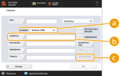 1 | Kirjoita tiedot lähettävän tiedostopalvelimen/Lisätila-tilan isäntänimi. ![]() Kysy verkon pääkäyttäjältä tietoja tiedostopalvelimesta/Lisätila-tilasta. <Protokolla>Valitse tiedostopalvelimen protokolla kohdassa <Windows (SMB)>, <FTP> ja <WebDAV>. Kun lähetät asiakirjat Lisätila-tilaan, valitse <Windows (SMB)> tai <WebDAV>. ![]() Jos valitset <Windows (SMB)>, <Isäntänimen haku>- ja <Selaa>-painikkeet näkyvät. Voit helposti määrittää tiedostopalvelimen/Lisätila-tilan hakemalla tai katselemalla verkkoa. Voit käyttää <Selaa>-toimintoa vain, jos <1,0>-asetus on <Kyllä> kohdassa <Määritä SMB asiakasversio>. Voit tallentaa enintään viisi hakemistopalvelinta käytettäväksi toiminnolla <Selaa>. <Isäntänimi>Kirjoita tiedostopalvelimen/Lisätila-tilan isäntänimi. Jos valitset protokollaksi <FTP>, syötä <Isäntänimi> seuraavasti. Kun TLS ei ole käytössä Esimerkki: Jaettuun tilaan tallentaminen: ftp://isäntänimi/share Henkilökohtaiseen tilaan tallentaminen: ftp://isäntänimi/users Kun TLS on käytössä: Esimerkki: Jaettuun tilaan tallentaminen: ftps://isäntänimi/share Henkilökohtaiseen tilaan tallentaminen: ftps://isäntänimi/users Kun lähetät asiakirjan Lisätila-tilaan, syötä <Isäntänimi> seuraavasti. Jos valitset protokollaksi <Windows (SMB)> Esimerkki: Tallennus Jaettuun tilaan: \\192.168.100.50\share Tallennus Henkilökohtaiseen tilaan: \\192.168.100.50\users Jos valitset protokollaksi <WebDAV> Kun TLS ei ole käytössä Esimerkki: Jaettuun tilaan tallentaminen: http://<IP-osoite tai isäntänimi> Henkilökohtaiseen tilaan tallentaminen: http://<IP-osoite tai isäntänimi> Kun TLS on käytössä: Esimerkki: Jaettuun tilaan tallentaminen: https://<IP-osoite tai isäntänimi> Henkilökohtaiseen tilaan tallentaminen: https://<IP-osoite tai isäntänimi> <Tarkista yhteys>Paina tätä painiketta, kun olet kirjoittanut isäntänimen, varmistaaksesi yhteyden tiedostopalvelimeen/Lisätila-tilaan. ![]() Jos käytät kirjautumispalvelua, kuten henkilökohtaista todentamisen hallintaa, <Käyttäjänimi> ja <Salasana> on syötettävä. |