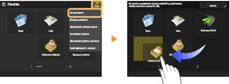 ![]() Voit myös poistaa pyyhkäisy- ja nipistystoiminnot käytöstä. <Käytä Pyyhkäise/Nipistä-toimintoa> Näytöissä, joiden painikkeita voi siirtää, painikkeiden siirtäminen tehdään vetämällä ja pudottamalla. ![]() |