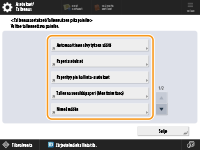 Jos <Aset./Tall.- vakiopainike> ei ole näkyvissä <Päävalikko>-näytössä, valitse  <Aloitusnäytön hallinnan asetukset>  <Rajoita toimintonäyttö>  <Aseta>  aseta <Aset./Tall.- vakiopainike> näytettäväksi. Pikapainikkeet, jotka voidaan tallentaa: 10 |