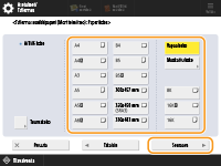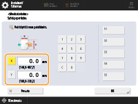 Valitse kummankin sivun pituus numeropainikkeilla valitsemalla <X> tai <Y>. ![]() Kun tallennat usein käyttämäsi paperikoot painikkeille <S1>–<S5>, voit käyttää niitä yhdellä painalluksella. Vapaan paperikoon (Muokattu paperikoko) tallentaminen | |