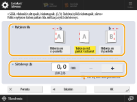 Säädä vihkonidonnan taitto- ja nidontakohta paperin keskelle. Tulosta testisivu, tarkista taittokohdan tilanne ja siirron leveys testisivulla ja säädä sitten.