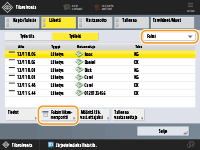 Jos tulostetun luettelon TULOS-sarakkeessa lukee NG, etsi ongelman syitä ja ratkaisuja tarkistamalla kolminumeroinen luku, jonka edellä on merkki #. Jos (Asetukset/Tallennus) <Hallinta-asetukset> <Laitehallinta> <Rajoita pääsyä toisen käyttäjän töihin> -asetuksena on <Kyllä>, muut kuin kirjautuneen käyttäjän työt näkyvät muodossa "***" eikä niitä voi käyttää. Jos kirjaudut sisään pääkäyttäjän oikeuksin, kaikkien käyttäjien työt näytetään. |