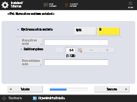 Jos <Käytä lisäluovutustasoa> -näyttö tulee näkyviin, määritä aiotko käyttää muita luovutustasoja. ![]() Jos <Päivämäärä/Aika-asetukset> -näyttö tulee näkyviin, jatka vaiheeseen 7. ![]() Ota luovutustaso käyttöön valitsemalla <Kyllä> tai poista se käytöstä valitsemalla <Ei> ja valitse <OK>. Näytettävät tiedot määräytyvät asennettujen lisävarusteiden mukaan. | |