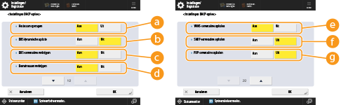 Om de host- en domeinnaam zo in te stellen dat ze gelijk zijn aan IPv4, drukt u op <Aan> bij <Gebruik dezelfde hostnaam/domeinnaam als IPv4>. Om andere instellingen dan voor IPv4 op te geven, drukt u op <Uit>.