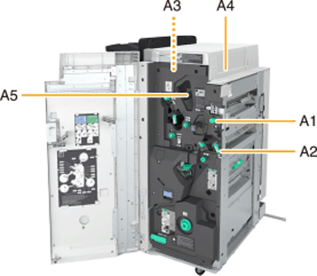 | Otwórz prawą pokrywę zespołu zszywania zeszytowego (C5). |