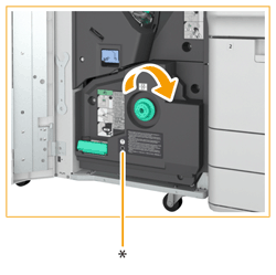 Jeżeli Booklet Trimmer-G jest podłączony, obrót pokrętła spowoduje podawanie zablokowanego papieru do taśmy podawania Booklet Trimmer-G.