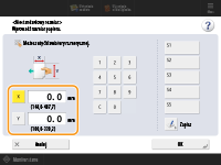 Naciśnij <X> albo <Y>, aby wprowadzić długość danego boku za pomocą klawiszy numerycznych. ![]() Jeżeli zarejestrujesz format najczęściej wykorzystywanego papieru pod klawiszami <S1> do <S5>, można z nich korzystać na zasadzie pojedynczego naciśnięcia. Rejestrowanie papieru o formacie dowolnym (Niestandardowy format papieru) | |
