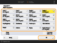 Jeżeli wyświetlony zostanie ekran inny, aniżeli ekran określania formatu i rodzaju papieruJeżeli wyświetlony zostanie komunikat informujący o konieczności regulacji prowadnic papieru, należy wyregulować te prowadnice i nacisnąć na <OK>. |