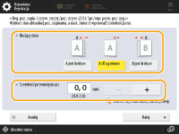 Wyreguluj pozycję składania przy zszywaniu zeszytowym i pozycję zszywania tak, aby znajdowały się na środku papieru. Wydrukuj stronę testową, sprawdź bieżący stan pozycji składania i szerokości przesunięcia na stronie testowej, a następnie dokonaj regulacji.
