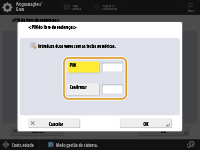 Introduza o PIN e carregue em <Confirmar>. Para confirmar, introduza o PIN novamente e carregue em <OK>.