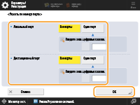 3 | Укажите порт, в отношении которого необходимо применить политику IPSec. Нажмите кнопку <Указать по номеру порта>, чтобы ввести номера портов, в отношении которых необходимо применить политику IPSec. Выберите <Все порты>, чтобы применить политику IPSec ко всем номерам портов. Чтобы применить политику IPSec только к определенному порту, нажмите кнопку <Один порт> и введите номер порта. После указания портов нажмите кнопку <OK>. Укажите порт аппарата в поле <Локальный порт>, а затем укажите порт кэширующего узла в поле <Дистанционный порт>. ![]() Нажмите кнопку <Указать по имени службы>, чтобы ввести имена служб, в отношении которых необходимо применить политику IPSec. Выберите в списке нужную службу и нажмите кнопку <Вкл./Выкл. службы>, чтобы задать для нее значение <Вкл.>, а затем нажмите кнопку <OK>. ![]() | ||||||||||||||