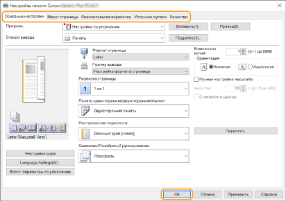 Настройте параметры печати по своему усмотрению и нажмите [ОК].