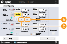 Beroende på typen av papper kan värmen från fixeringsenheten göra att papperet expanderar eller krymper något. Bilderna blir i så fall förstorade eller förminskade med motsvarande grad. Med denna funktion kan du ställa in zoomförhållandet för bilden för varje papper eller förstora den förminskade bilden så att den stämmer med zoomförhållandet för bilden på den andra sidan av papperet. Du kan justera zoomförhållandet för bilden antingen genom att ange förstorings-/förminskningsförhållandet eller genom att ange det värde för provsidan du mätt upp manuellt.