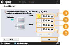 När du öppnar skärmen <Justera bildplacering> igen efter att du stängt skärmen genom att trycka på <OK>, återställs värdena på skärmen till <0>. Det inställda värdet gäller dock fortfarande. Om du upprepar stegen läser du av värdet för registermarkörerna från den nya provsidan och för in det nya värdet.