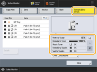 (Status Monitor), the Status Monitor screen is displayed, allowing you to check the toner level or other status indications.