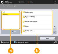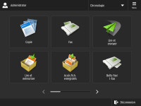 Appuyez sur la touche affichée sur l’écran <Accueil> et sur l'écran des fonctions de base pour personnaliser l'écran, par exemple en réorganisant les touches ou en créant une touche de raccourci. Personnalisation de l'afficheur tactile![]() Vous pouvez modifier les paramètres d'affichage, notamment en définissant l'écran qui doit apparaître lorsque l'appareil est mis sous tension ou en indiquant si le message de niveau de papier ou de toner doit apparaître. <Réglages d'affichage> Vous pouvez définir l'écran qui doit s'afficher au-delà d'un certain délai d'inactivité. <Fonction après réinit. auto> |