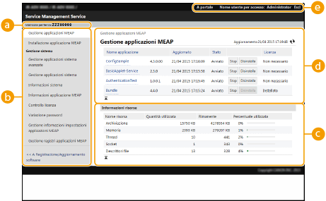 [Gestione applicazioni MEAP]: La gestione di applicazioni MEAP installate viene eseguita principalmente su questa pagina.