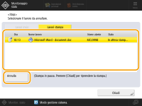 Selezionare il lavoro da annullare e premere <Annulla>.