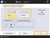 Per sovrimprimere l'immagine della forma senza regolare la densità, premere <Pieno>. Per sovrimprimere l'immagine della forma con densità diminuita, premere <Trasparente> e regolare la densità.