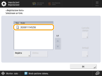 Per modificare il nome di un'immagine della forma già registrata, selezionare l'immagine della forma dall'elenco nel passo 5 e premere <Dettagli>  <Ridenominazione form>. Per cancellare un'immagine della forma, selezionarla dall'elenco e premere <Elimina>. È possibile registrare fino a 100 moduli immagine. Tuttavia, questo numero varia in base alla capacità della periferica di memorizzazione. |