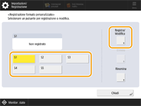 Selezionare un pulsante da <S1> a <S5> e premere <Registra/Modifica>.