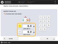 Specificare la lunghezza del lato <X> e del lato <Y>. Premere <X> o <Y> per inserire la lunghezza di ciascun lato usando i tasti numerici.