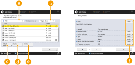 Quando si registrano le impostazioni per il tipo di carta personalizzato, accertarsi di modificarne il nome. Non è possibile modificare le impostazioni dei tipi di carta predefeniti registrati nella macchina. |